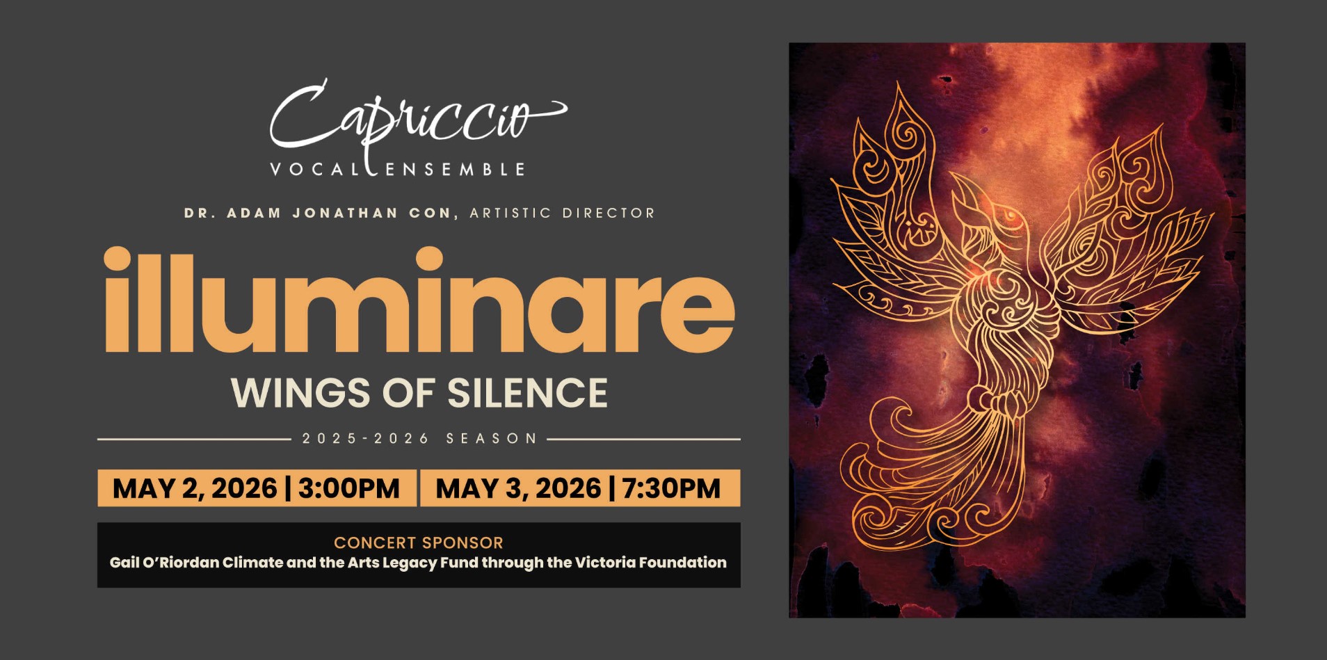 The inaugural event of the 2026 Celebrating Gaia Series, features the BC Premiere of magnificent choral work by Christopher Tin, presented by the Capriccio Vocal Ensemble. Wings of Silence offers a moving artistic experience grounded in environmental awareness — a soaring tribute to the beauty of flight and a poignant lament for species lost to time. This immersive performance is enriched by a collaboration of images provided by the Rocky Point Bird Observatory (RPBO).
